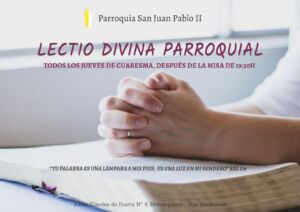 Durante el tiempo de Cuaresma, la Parroquia ofrecerá una lectio divina parroquial, los días jueves, en la capilla sacramental, tras la misa de las siete y media de la tarde.